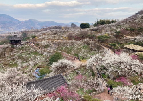 | 제25회 광양매화축제는 지난해와는 달리 꽃 만발하는 화사한 행사로 치러질 전망이다. 사진은 광양 청매실 농원 모습. 사진제공=광양시 |