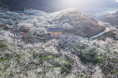 특히 매화 정원을 연출하는 청매실농원은 현재 하단부는 70% 이상 만개하고 상단부는 꽃망울을 머금고 있어 축제 기간 내내 꽃이 만개할 것으로 전망된다.