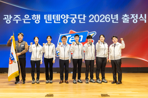 광주은행 텐텐양궁단은 지난 9일 광주은행 본점 3층 대강당에서 2026 출정식 및 입단식을 개최하며 새 시즌 도약을 예고했다. 이날 행사는 새로 입단하는 오예진 선수를 비롯한 선수단과 정일선 광주은행장 등이 참석한 가운데 진행됐다.