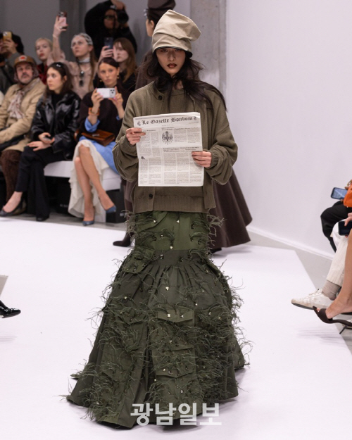 김인태 디자이너는 조형적인 헤어 장식과 절제된 실루엣을 활용한 의상으로 무대를 시작한 뒤 정교한 재단과 장식 요소를 더한 디자인을 선보이며 완성도를 높였다. 프랑스 전통 쿠튀르 기법을 브랜드 고유의 감각으로 재해석해 독창적인 미학을 보여줬다는 평가를 받았다.