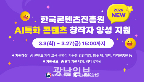 콘진원 관계자는 “이번 사업이 콘텐츠와 AI의 융합을 통해 K-콘텐츠 산업의 미래 경쟁력을 높이는 중요한 출발점이 될 것”이라며 “AI 전환(AX) 시대를 맞아 대한민국 콘텐츠 산업에 새로운 생명력을 불어넣을 특화 인재를 지속적으로 발굴하고 육성해 나가겠다”고 말했다.