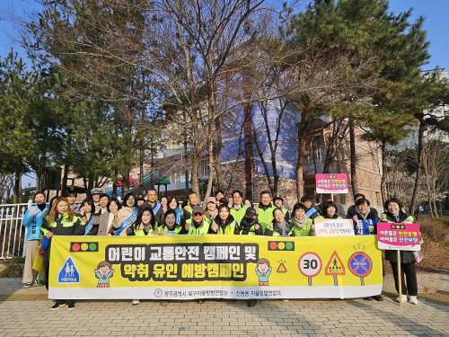 광주 북부경찰은 11일 북구 신용동 신용초등학교에서 어린이 교통사고 예방과 공동체 신뢰회복을 위한 교통 기초질서 확립 유관기관 합동 캠페인을 실시했다.