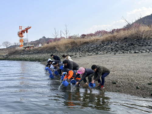 | 광양시는 최근 다압면 섬진강 일원에서 생태환경 보전과 지속가능한 어족자원 확보를 위해 어린 은어 4만마리를 방류했다. 사진제공=광양시 |