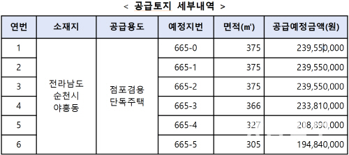 공급에 관한 자세한 사항은 LH청약플러스 홈페이지를 참고하거나 LH콜센터(1600-1004), LH 광주전남지역본부 판매팀(062-360-3174)로 문의하면 된다.