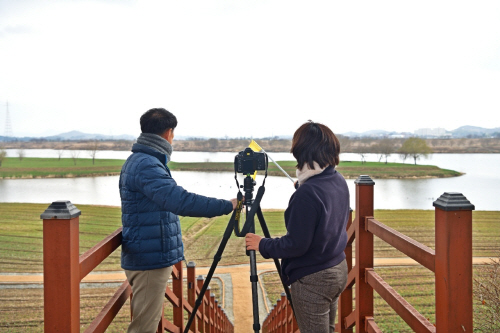 | 나주시와 남도풍경연구소가 지난 10일 영산강 들섬과 동섬 일원에서 사진 촬영 명소 위치를 확인했다. 사진제공=나주시 |