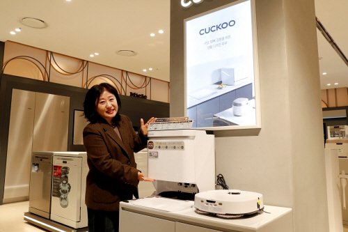 | ㈜광주신세계가 광주지역 신규 아파트 입주 물량이 크게 늘어남에 맞춰 오는 22일까지 가전용품 할인전을 준비했다. 인기 브랜드 ‘쿠쿠’의 전기밥솥, 인덕션 등을 30~50% 할인 판매해 입주를 앞둔 고객들의 관심을 끌 것으로 기대된다. 사진은 광주신세계 쿠쿠 매장에서 직원이 로봇청소기를 설명하고 있는 모습. |