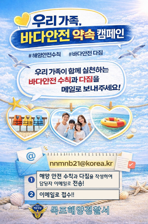 채수준 목포해양경찰서장은 “연안사고는 작은 부주의에서 시작되는 경우가 많은 만큼, 국민 한 사람 한 사람의 참여가 무엇보다 중요하다”며 “이번 캠페인을 통해 국민과 함께 만드는 해양안전 문화를 정착시키고, 사고 예방 중심의 현장 대응을 강화해 나가겠다”고 말했다.