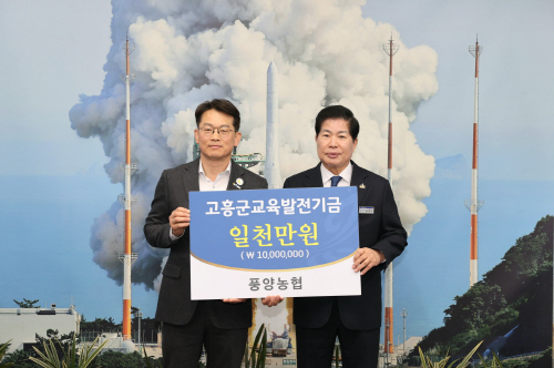 | 풍양농협이 최근 교육발전기금 1000만원을 (사)고흥군교육발전위원회에 전달했다. 사진제공=고흥군 |