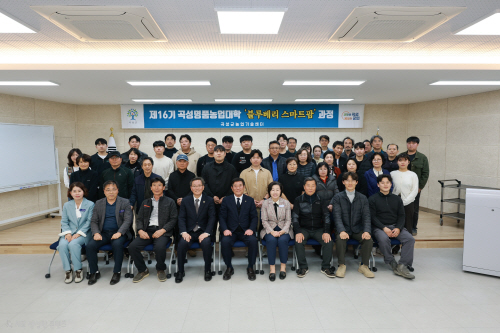 | 곡성군은 최근 농업기술센터 대청마당에서 교육생 및 관계자 50여명이 참석한 가운데 제16기 곡성명품농업대학 블루베리 스마트팜 과정 개강식을 개최했다. 사진제공=곡성군 |