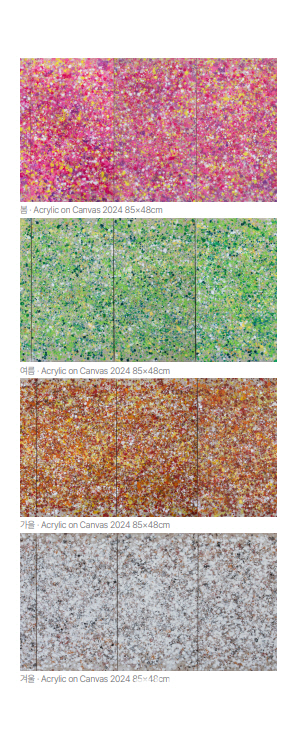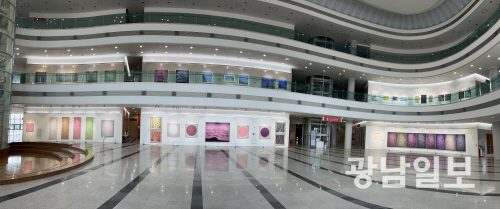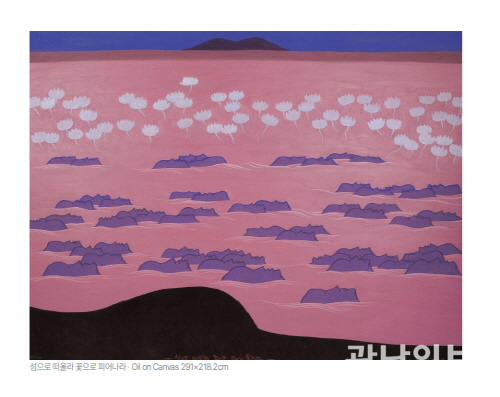 지난 3일 개막된 이번 전시는 구상과 추상을 망라해 ‘봄’·‘여름’·‘가울’·‘겨율’, ‘동백꽃 피던 날’, ‘섬으로 떠올라 꽃으로 피어나라’ 등 20호에서 200호에 이르기까지 총 47점이 출품돼 선보이고 있다. 작품은 대개 2010년 전후부터 2026년 현재까지 망라돼 있다.