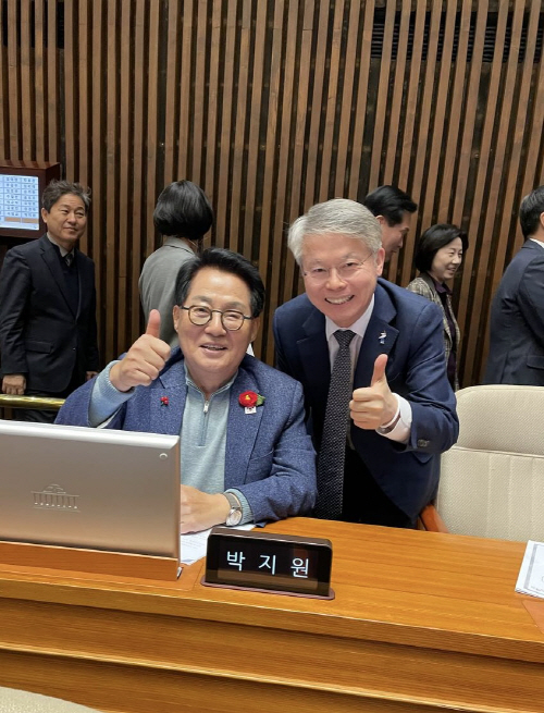 | 더불어민주당 전남광주통합특별시장 경선 후보인 민형배 국회의원(광주 광산구을, 오른쪽)의 경선사무소 ‘민심캠프’는 24일 민주당 박지원 의원이 민 의원의 후원회장을 맡기로 했다고 밝혔다. [민형배 의원실 제공] |