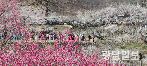 맑고 화창한 봄날씨를 보인 24일 전남 광양시 다압면 매화마을을 찾은 나들이객들이 활짝 핀 매화꽃 사잇길을 걸으며 추억을 만들고 있다. 봄의 전령 매화는 피어나는 환경에 따라 다양한 이름을 갖고 있는데 눈 속에 피면 ‘설중매’, 달빛과 어울리면 ‘월매(月梅)’, 빗속에 피면 ‘우중매’라 한다. 매화는 봄을 가장 먼저 알리는 꽃으로서 희망과 시작을 상징한다.