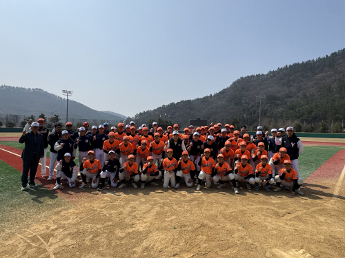 | 송진호 전남도체육회장이 26일 함평야구장에서 전국소년체전 출전을 위한 선발전을 치르고 있는 전남 유소년 야구 선수단을 찾아 선수 및 지도자들을 격려했다. 사진제공=전남도체육회 |