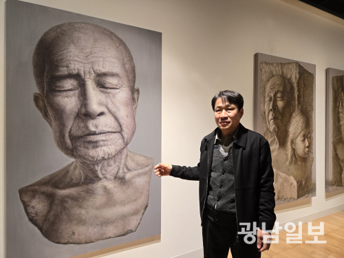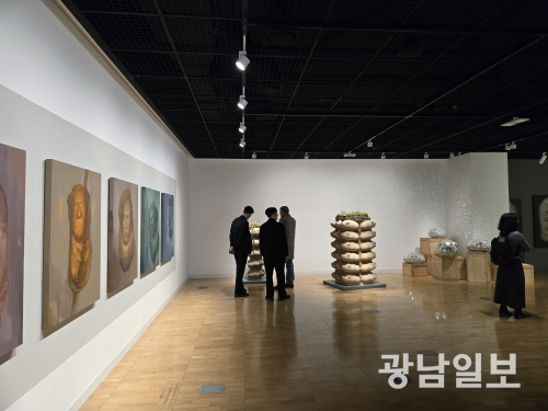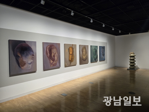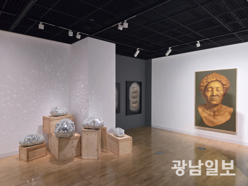 벽면에 설치된 ‘현재인’ 시리즈는 실제 인물들을 라이프캐스팅한 뒤 그 모습을 왜곡해 평면에 옮겨 급변하는 사회 속 인간의 존재를 담담히 보여주며, 가족의 얼굴을 담은 ‘시대의 유물을 보다’ 시리즈는 개인의 삶과 역사를 중첩시켜 근현대사를 거쳐 굴곡진 삶을 감내해온 이들의 모습을 기념비적 존재로 재구성한다
