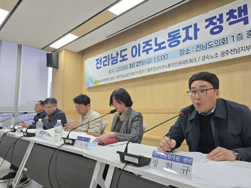 또 “전남도는 임금기준 완화, E-9조선업쿼터 신설, 근무처변경 제한, 고용비율 비자별 별도 산정 등을 추진했다”며 “민간 주도 이주노동자 공급은 브로커가 개입할 여지만 늘리는 결과를 초래한다”고 강조했다.