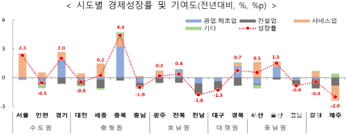 특히 반도체 협력사와 장비·소재 기업이 밀집해 있는 충북은 광업·제조업이 7.6% 성장하며 지역 성장을 견인했다.