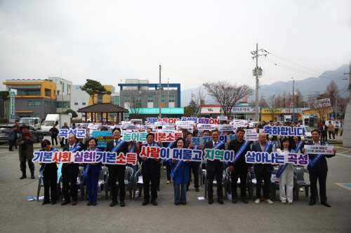 행사 후에는 ‘곡성군 농어촌 기본소득 지역경제를 살립니다’ 문구가 적힌 어깨띠를 착용하고 전통시장과 인근 가맹점을 방문해 스티커 부착과 첫 결제 이벤트를 진행하며 기본소득 사용을 독려했다.