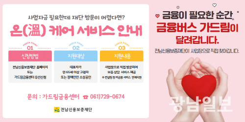이강근 전남신보 이사장은 “온-케어 서비스는 요즘 같은 AI, 디지털 시대에 각종 정책에서 소외되는 분들을 위한 서비스로 우리 재단은 앞으로도 소외되는 분이 없도록 촘촘한 지원을 통해 소상공인의 든든한 동반자로서의 역할을 강화해 나가겠다”고 밝혔다.