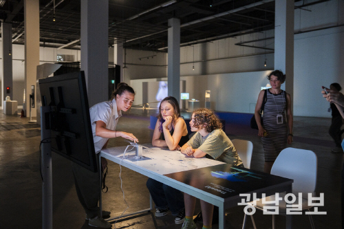 | 지난해 진행된 ‘2025 광주디자인비엔날레’에서 관람객들이 도슨트의 설명을 듣고 있다. 사진제공=(재)광주비엔날레 |
