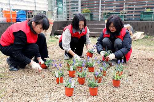 참가자들은 이날 장미조팝나무, 수선화, 데이지 등 곤충들에게 꿀을 공급하는 밀원식물 500여본을 정성껏 심었다.