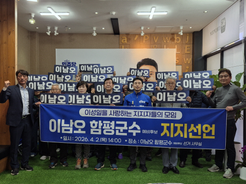 이성일 예비후보 지지자 모임 소속 50여 명은 2일 이남오 예비후보 선거사무실에서 성명서를 발표하고 공개 지지를 밝혔다. 이들은 “전남·광주 행정통합이라는 변화의 시점에서 함평의 미래를 위한 선택으로 이남오 후보를 지지한다”고 밝혔다.