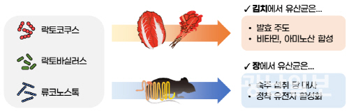 김치 환경에서는 산성 조건과 산화 스트레스에 대응하기 위해 비타민 및 아미노산 합성과 관련된 대사 경로가 활성화되며 발효 기능 유지에 기여하는 것으로 나타났다. 반면 장내 환경에서는 숙주가 섭취한 영양 성분을 보다 효율적으로 활용하기 위해 당 대사 관련 유전자 발현이 증가했고, 장 점막에 안정적으로 부착하기 위한 세포벽 구조 변화와 접착 관련 유전자 발현이 강화되는 양상이 확인됐다.