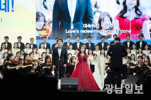 | 찬양하는 그라시아스합창단 테너 신지혁, 소프라노 이수연. 사진제공=기독교지도자연합 |