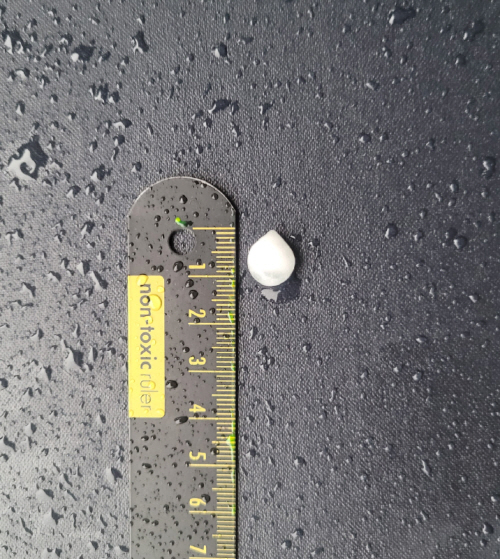 | 6일 오후 2시6분부터 오후 2시11분까지 5분간 광주 북구에 위치한 광주지방기상청 마당에서 지름 1.2㎝의 우박이 내렸다. 사진제공=광주지방기상청 |