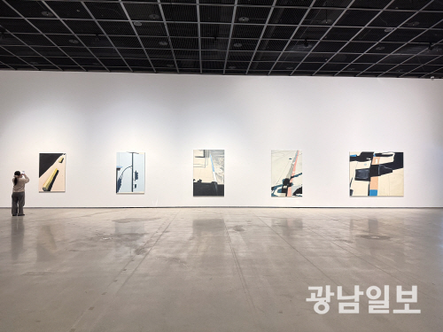 전시는 총 다섯 개의 전시실로 구성되며, 연대기적 배열이 아닌 이미지와 물질의 흐름에 따라 작가의 시선이 확장되는 과정을 따라간다. 1전시실 ‘도시의 장면들’에서는 1990년대 후반과 2000년대 초반 작업을 중심으로, 연석과 차선, 그림자 등의 도로 요소가 도시 구조를 드러내는 풍경의 단면으로 제시되며, 2전시실 ‘도로의 이미지들’에서는 ‘Dead End’, ‘The Edge’ 연작을 통해 도로와 건축의 일부가 강렬한 색면과 단순한 구도 속에서 추상적 구성으로 전환되는 과정을 보여준다.