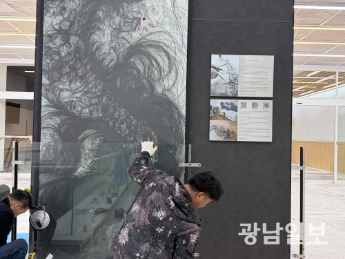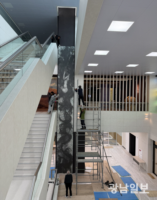 | 박소빈 작가의 대작 ‘새로운 신화 창조’가 이노베이션을 새롭게 거친 목포대 박물관 로비에 설치,이달부터 본격적인 전시에 들어가게 됐다. |