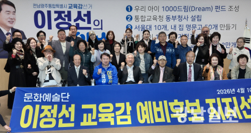 문화예술인 동호회와 지역 예술계 인사 60여명은 10일 이정선 전남광주특별시 교육감 예비후보 선거사무소에서 발표한 지지문을 통해 “전남·광주 교육의 새로운 변화와 도약을 위해 이정선 후보를 지지한다”고 밝혔다.