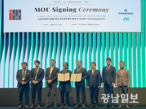 GIST는 10일 서울 서초구 엘타워에서 NI와 AI 반도체 테스트 분야 전문인력 양성과 산학협력 강화를 위한 업무협약(MOU)을 체결했다고 밝혔다.