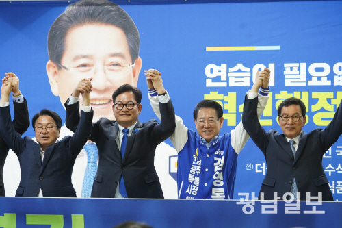 김 후보는 송 전 대표의 합류에다 본경선을 함께 뛴 신정훈 의원과 강기정 시장을 비롯해 임택 광주 동구청장, 김병내 광주 남구청장, 박병규 광주 광산구청장, 문인 광주 북구청장까지 함께 하기로 하면서 유례 없는 초대형 ‘빅텐트’ 구성을 마치게 됐다.