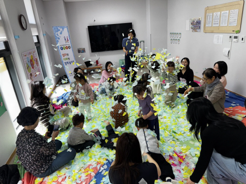 | 순천시육아종합지원센터가 어린이집을 방문해 ‘엄마, 아빠랑 함께 놀아요’ 프로그램을 진행하고 있다. 사진제공=순천시청 |