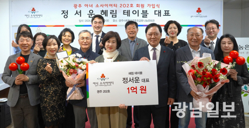 광주사회복지공동모금회는 13일 광주사랑의열매 나눔문화관에서 정서운 혜림테이블 대표의 아너 소사이어티 가입식을 진행했다.