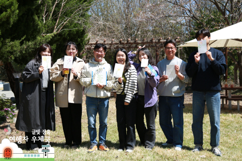| 장흥 빠삐용ZIP에서 4월 한달간 2026 구석구석 문화가 있는 날 사업으로 ‘글빛장흥 여행자 우체국’이 진행된다. 사진은 지난 8일 ‘봄날의 꽃편지 살롱’ 참가자들이 결과물을 든 모습. 사진제공=빠삐용ZIP |
