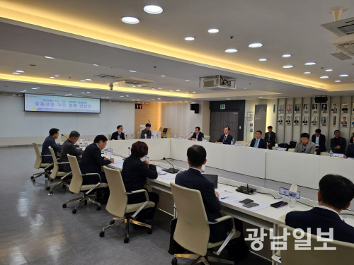 | 광주시와 국토교통부, 전남도, 전북도는 14일 광주시청 중회의실에서 ‘중앙·지방정부-건설업계 중동상황 대응 합동 간담회’를 열고 지역 건설업계 위기 대응 방안을 논의했다. |