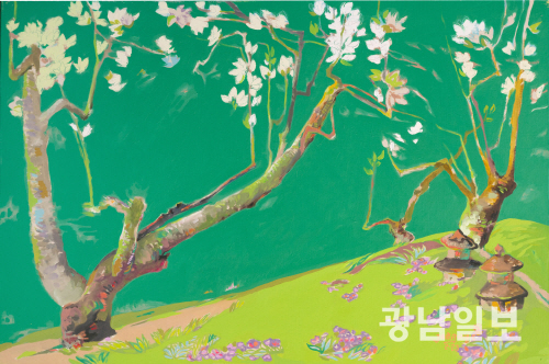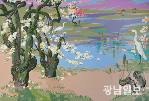 그의 화면에는 봄의 시작과 선비의 기운을 상징하는 매화와 목련, 소나무 그리고 우리 민중의 생명력을 닮은 들풀 등 다양한 봄꽃들이 담겨있다. 작가는 단순히 봄꽃의 아름다움을 표현하는 것에 그치지 않고, 그 이면에 오늘날 현대인의 모습과 삶의 고민을 녹여냈다는 설명이다.