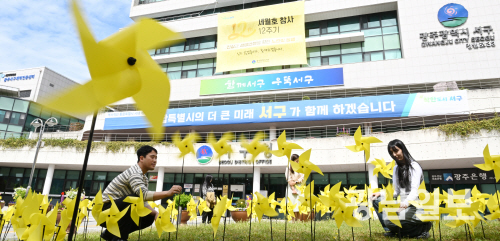 앞서 광주 북구는 지난 13일 구청 광장 화단에 세월호 희생자를 추모하는 노란 리본과 바람개비를, 청사 외벽에 ‘잊지 않겠습니다’라는 문구가 적힌 현수막을 설치했다. 오는 17일까지를 추모 주간으로 운영한다.