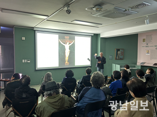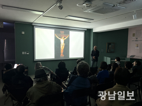 | 하정웅미술관은 매달 마지막 주 수요일 ‘문화가 있는 날’에 ‘해설이 있는 예술영화’ 프로그램(기획 조대영)을 본격 가동한다. 사진은 지난 3월 25일 올들어 처음으로 선보인 해설이 있는 예술영화 ‘고야의 유령’편 진행 모습. |