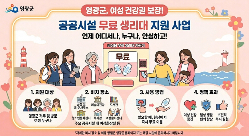 영광군 관계자는 “일상 속에서 누구나 겪을 수 있는 불편을 줄이기 위한 생활밀착형 정책이다”며 “군민들이 체감할 수 있는 여성 친화 정책을 계속 확대해 나가겠다”고 말했다.