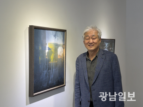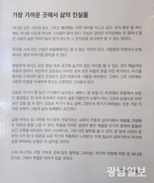 전시장에 걸린 중견 한희원 화가의 김창호 사진작가 전시에 대한 비평문