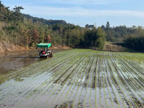 | 영광군 군남면 용암리 한 농가에서 올해 첫 모내기를 진행한 모습. 사진제공=영광군청 |