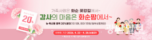 ‘감사의 마음 전달 쪽지’ 코너는 이벤트 게시판에 가족이나 스승, 소중한 이에게 전하는 감사 메시지를 작성하면 우수 작성자 10명을 선정해 화순팜 입점 농특산물 등 2만~3만원 상당의 상품을 증정한다.