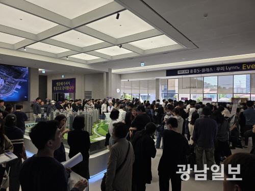 | 중흥건설그룹 중흥토건과 우미건설이 전남 여수시 소호동에서 선보이는 ‘여수 소제 중흥S-클래스 우미린’이 24일 웅천동 1807-3번지에 마련된 견본주택을 개관하고 분양 일정에 본격 돌입했다. 이날 견본주택 현장에서 분양에 관심이 있는 수요자들의 발길이 하루 종일 이어졌다. |