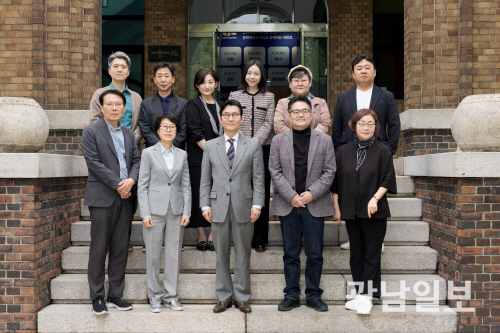 | 한국문화예술위원회 제9기 위원회 단체 기념촬영 모습. 앞줄 가운데가 신임 위원장으로 선임된 이범헌 신한대학교 특임교수 |