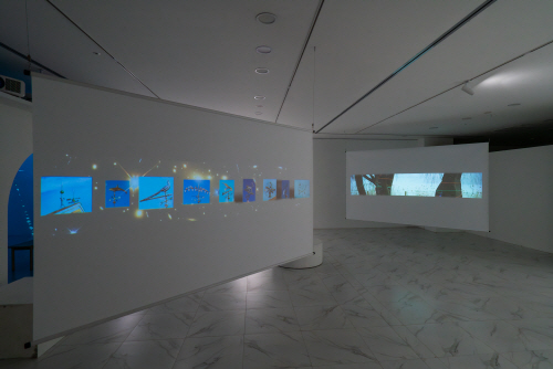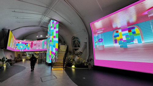 | 국립아시아문화전당재단(ACC재단)은 국립아시아문화전당에서 창·제작한 시각예술 작품들에 대한 대중의 접근성을 높이기 위해 ‘미디어아트 전시기관 공모’를 진행, 전국의 주요 문화예술기관에 유통하고 있다. 사진은 지난 3월 서울 미래한강본부의 한강플플에서 선보인 ‘그 너머의 공간으로의 초대’. 사진제공=ACC재단 |