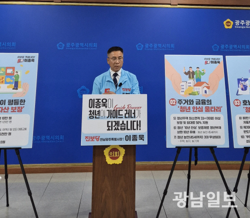 이종욱 후보는 28일 광주시의회 브리핑룸에서 기자회견을 갖고 ‘청년 날개 10대 프로젝트’를 발표했다.