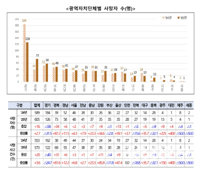 최근 통계에서도 증가세는 이어지고 있다. 고용노동부 ‘2025년 산업재해 현황 부가통계(잠정)’에 따르면 상시근로자 기준 광주 지역 산재 사망사고는 2024년 4건·4명에서 2025년 10건·9명으로 두 배 이상 늘었다. 전남 역시 같은 기간 37건·38명에서 38건·41명으로 증가했다. 일용직과 미등록 노동자 등이 통계에서 제외된 점을 감안하면 실제 피해 규모는 더 클 것으로 추정된다.