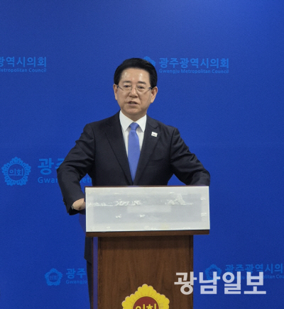김영록 지사는 29일 광주시의회 브리핑룸에서 기자회견을 갖고 “전남광주통합특별시의 성공적 출범이라는 대의를 위해 경선 결과를 겸허히 받아들였지만, 납득할 수 없는 깜깜이 경선은 민주주의의 근간을 뒤흔드는 중대한 사안이다”고 밝혔다.